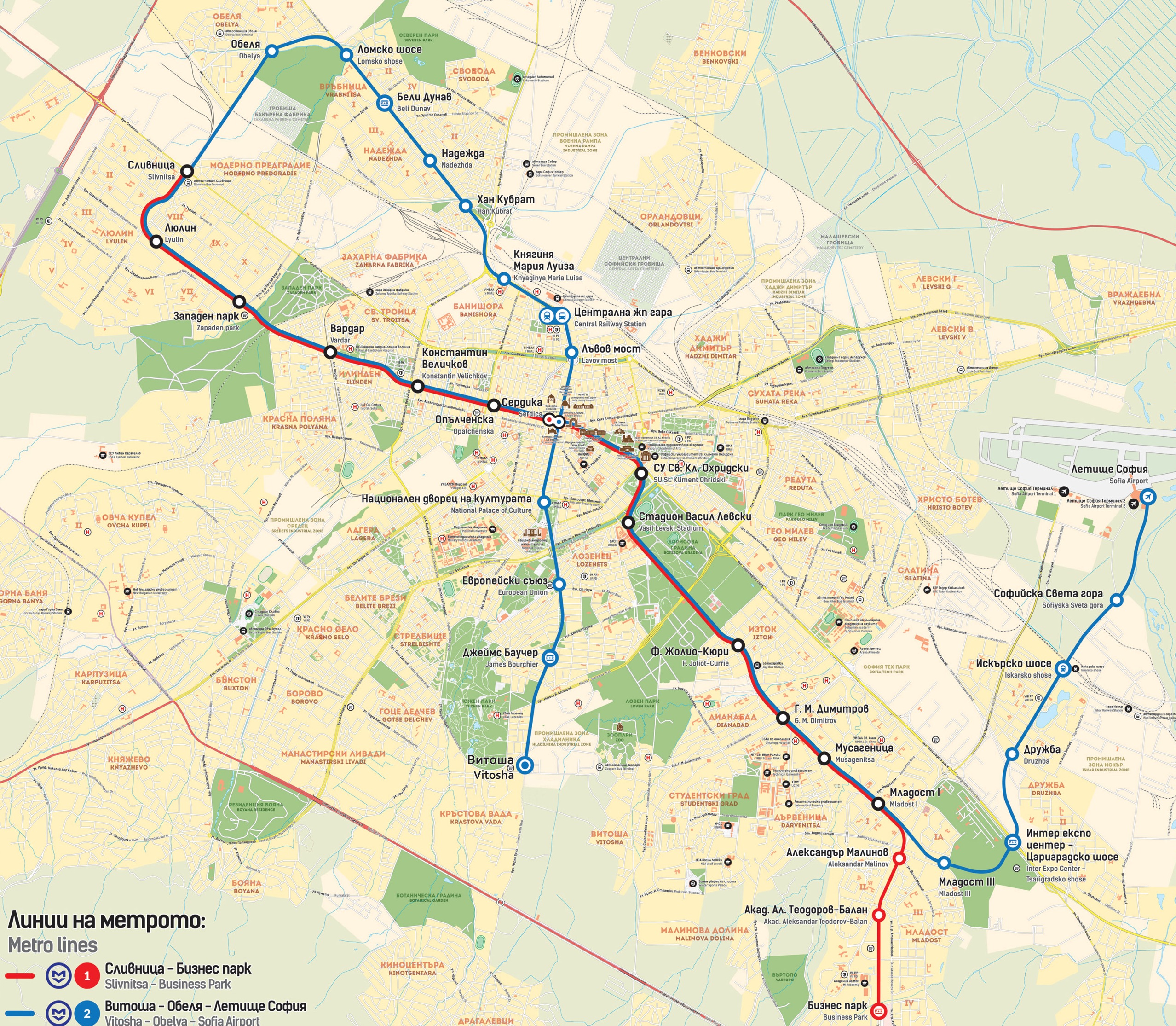 Метростанция "Дружба" Метростанция "Летище София" |